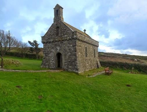 My cliff top rambling ended at St. Justinian’s, the place where that other saint had been killed and where I hoped to pray in the ruins of the church built upon the spot of his murder. That church however, is today fenced off within the bounds of someone’s garden and after feeling a tinge of the anger of the 17th century Diggers…